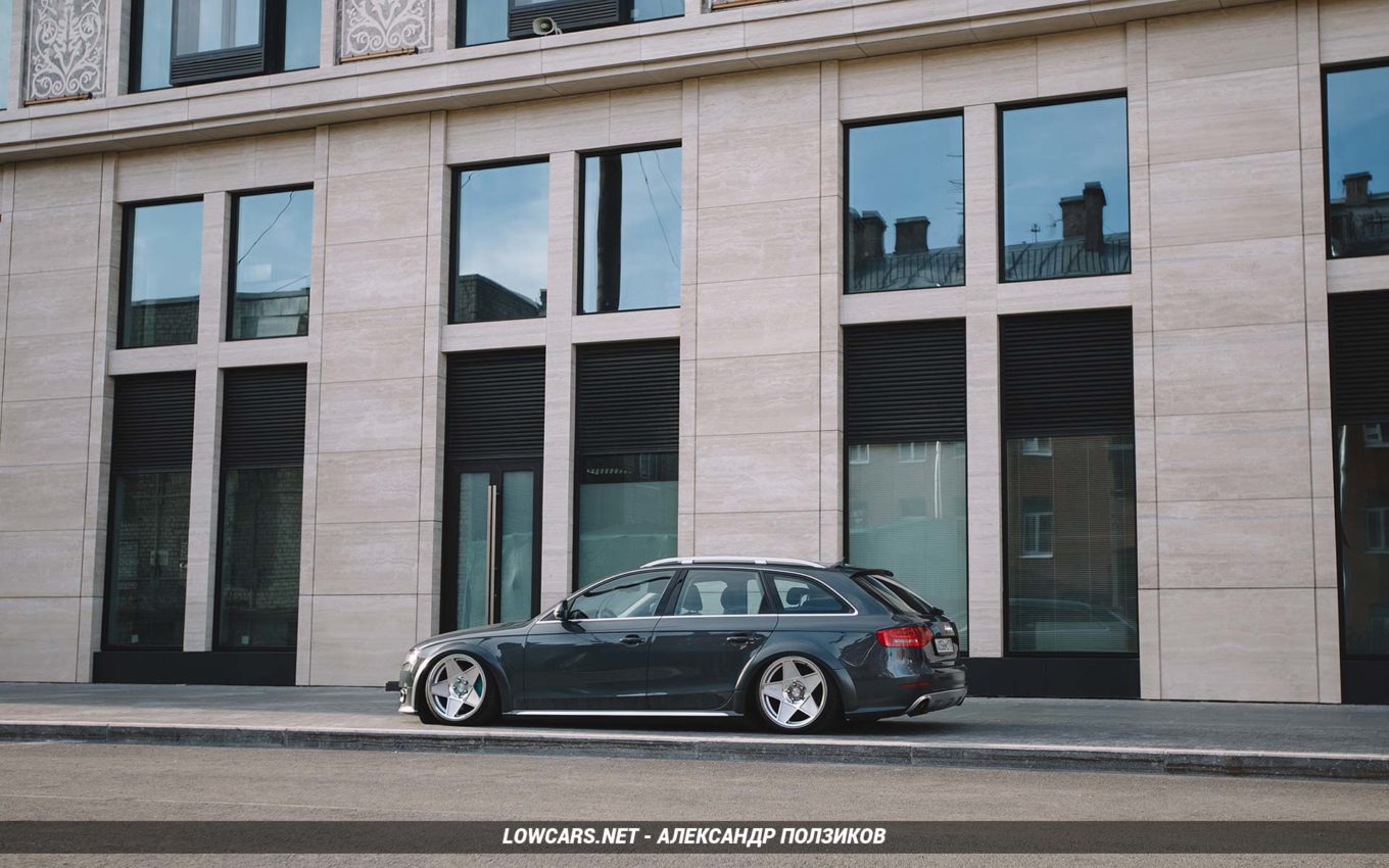 Речь сегодня пойдет об Audi a4 AllRoad, а вернее, LowRoad, именно так Сергей назвал проект, думаю, объяснять почему так, не стоит. К слову, это первый и пока единственный a4 allroad на пневмоподвеске. Попала в руки Сергею машина от отца, полностью в стоковом состоянии. Ему это сразу понравилось: почти внедорожник, но свыкнуться с тем, что allroad «клевал» носом при торможении он не смог, были куплены винты H&R Ultra Low от аванта.